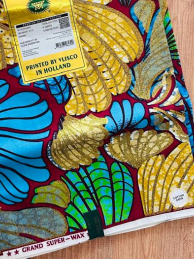 Rouge rubis et bleu roi, avec des touches dorées, découvrez la pièce, Rubis Impérial, notre super grand-wax, 100% coton-satiné de qualité premium,proposé à un prix exceptionnel ! Avec ses motifs éclatants sur un pagne 100% coton satiné qui lui procurer cet aspect scintillant, ce tissu unique allie style et confort. Parfait pour confectionner des tenues de soirées, des mariages, des baptêmes ou des cérémonies traditionnelles, il permet aux femmes de s'affirmer en société avec chic, responsabilité et luxe.